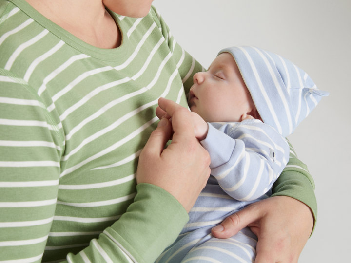 Vi har produkter och kläder som passar perfekt för den första tiden med bebis. PO.P MAMA är vår serie mammakläder som består av ett par mjuka gravidbyxor i tunn bomullstrikå och en skön amningstopp med vår klassiska rand. Våra gravidbyxor är sydda med extra mjuka sömmar och har en lång, nedvikbar mudd i midjan som ger skönt stöd åt magen. Amningstoppen är designad för att göra amningen så smidig som möjligt med extra tyg att vika upp och åt sidan över brösten.