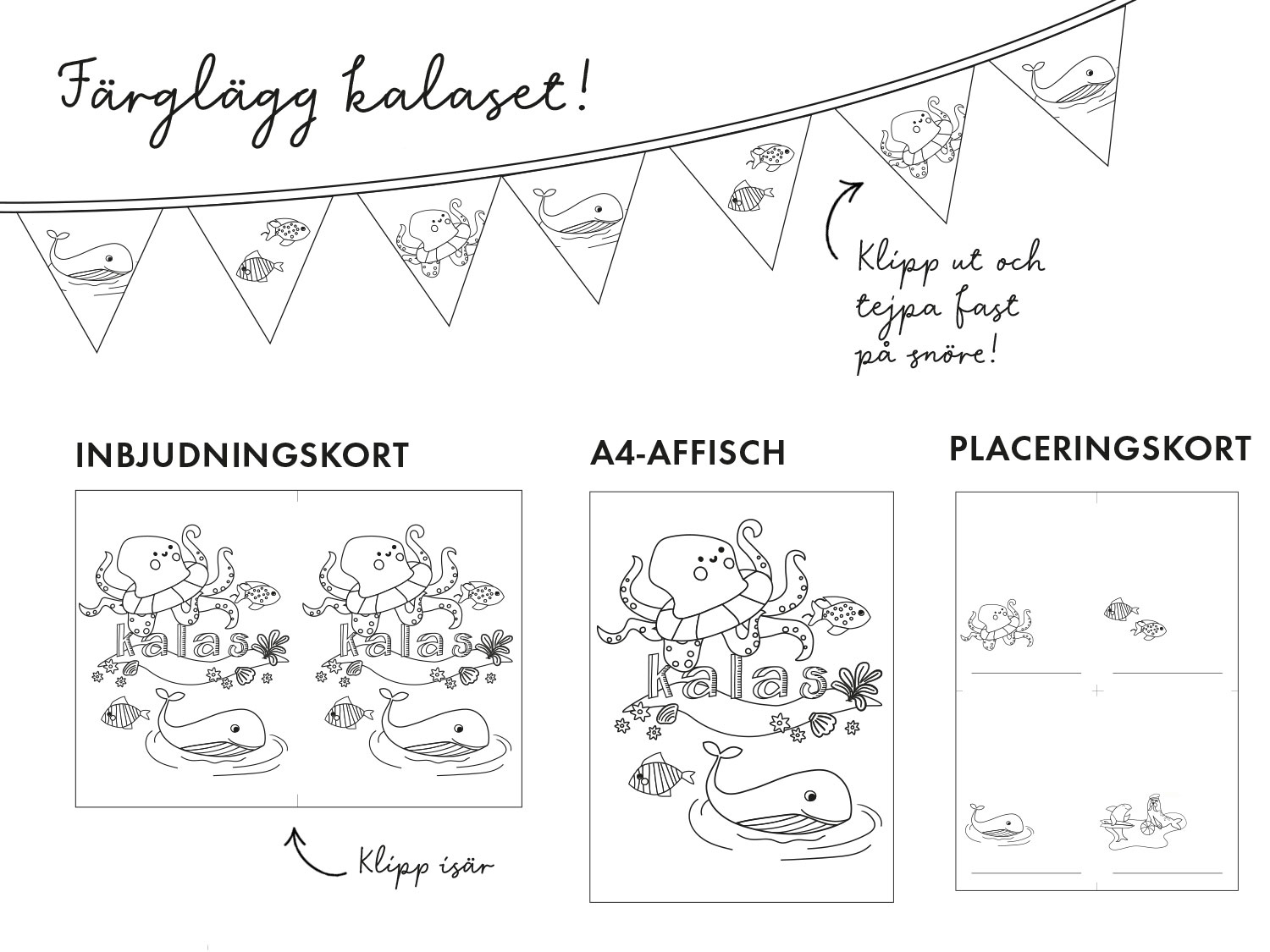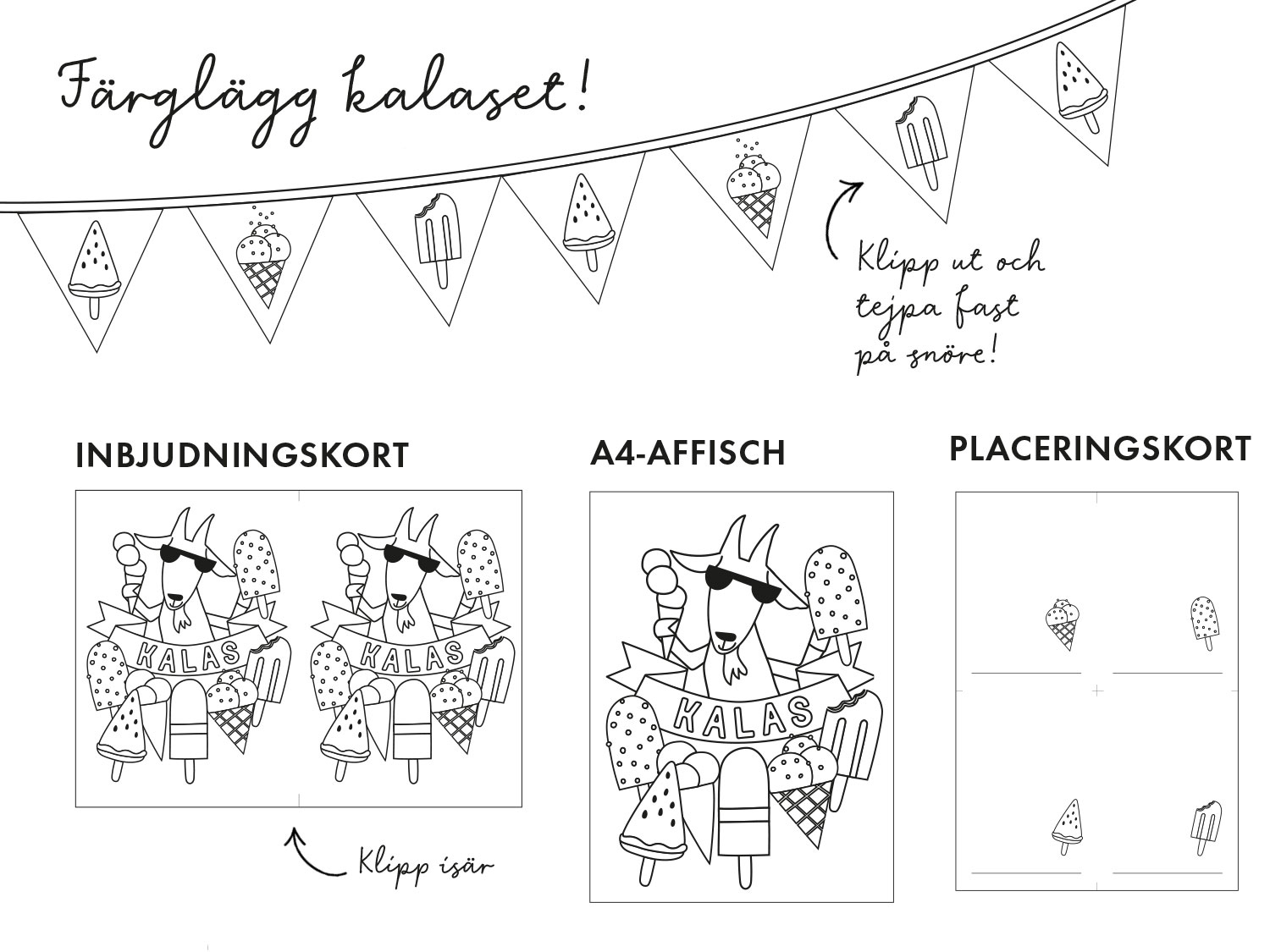 Bjud familjen, kompisen eller kaninen på kalas i sommar! Vi har samlat inbjudningskort, vimplar, placeringskort och affischer som du kan skriva ut och färglägga för att sätta den rätta stämningen på tillställningen.